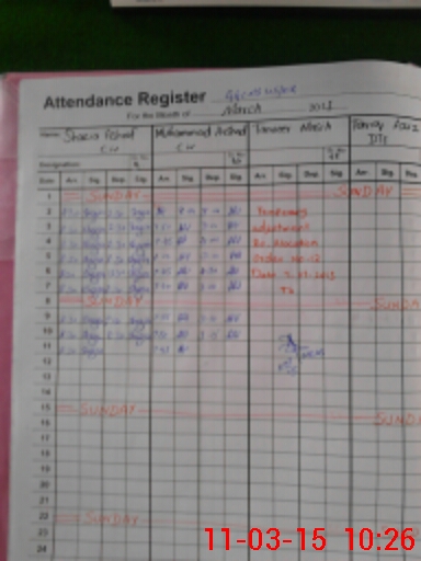 | CNIC | Full Name | Designation | R/C | Absence During Last Calender Month |