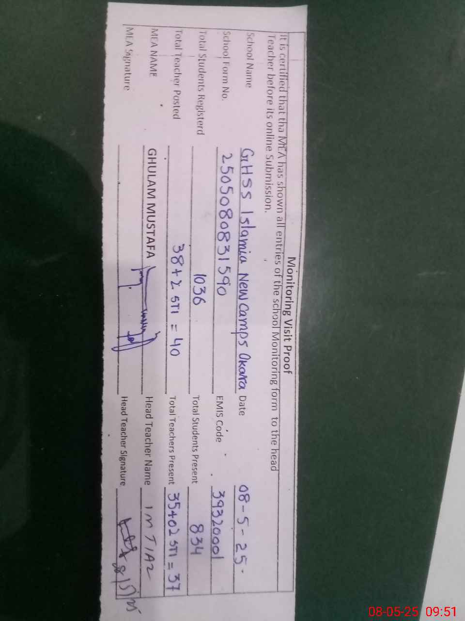 | Name: Im**** Al**** Mi**** Designation: (School Headmaster's/Headmistress's) PRINCIPAL Phone/Cell Number: 03**** |