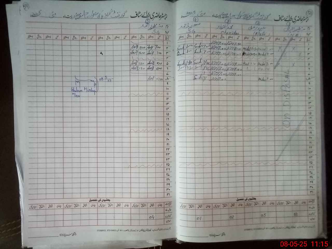| CNIC | Full Name | Designation | R/C | Absence During Last Calender Month |