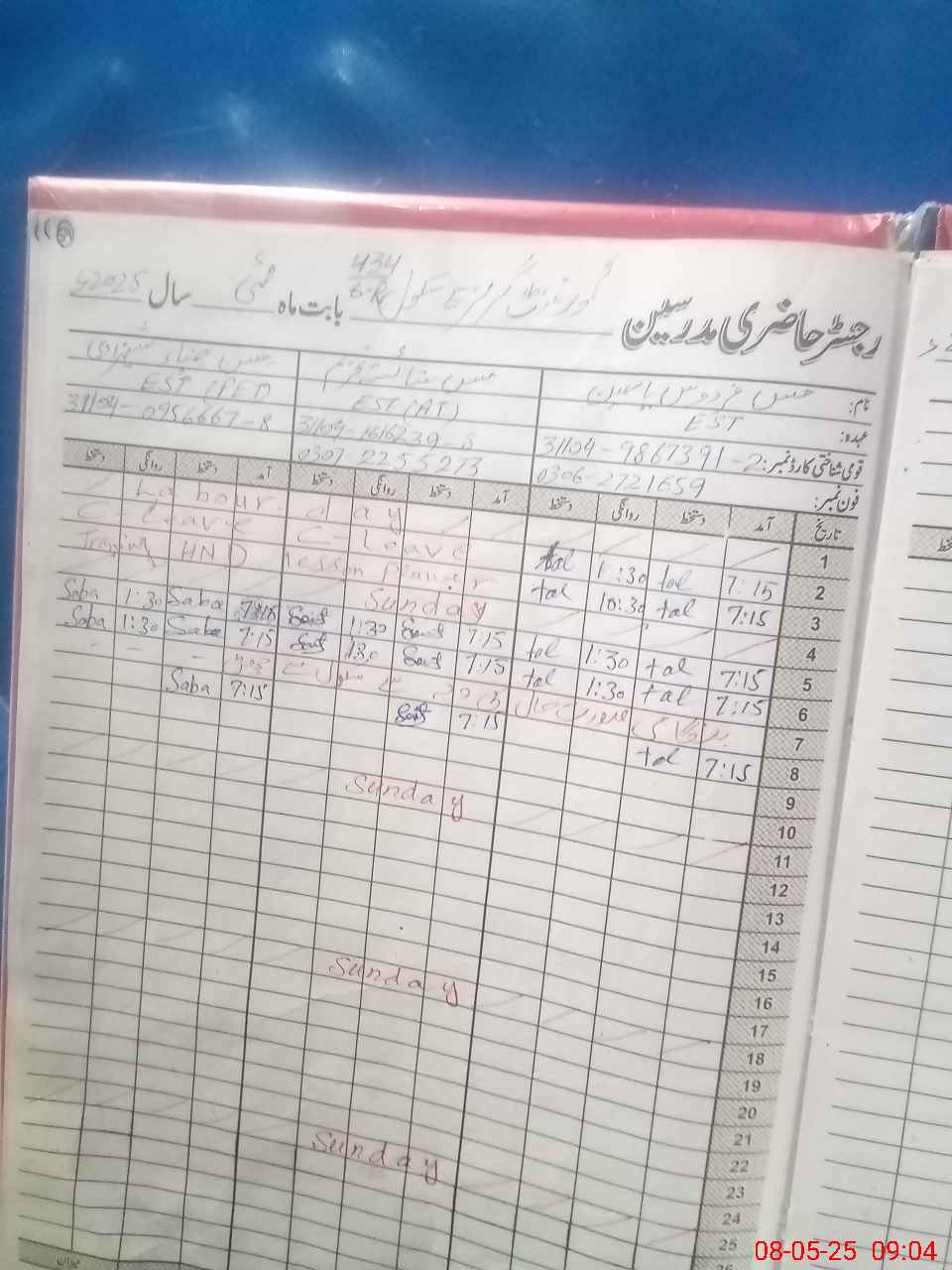 | Name: Na**** Pe**** Designation: (School Headmaster's/Headmistress's) EST Phone/Cell Number: 03**** |