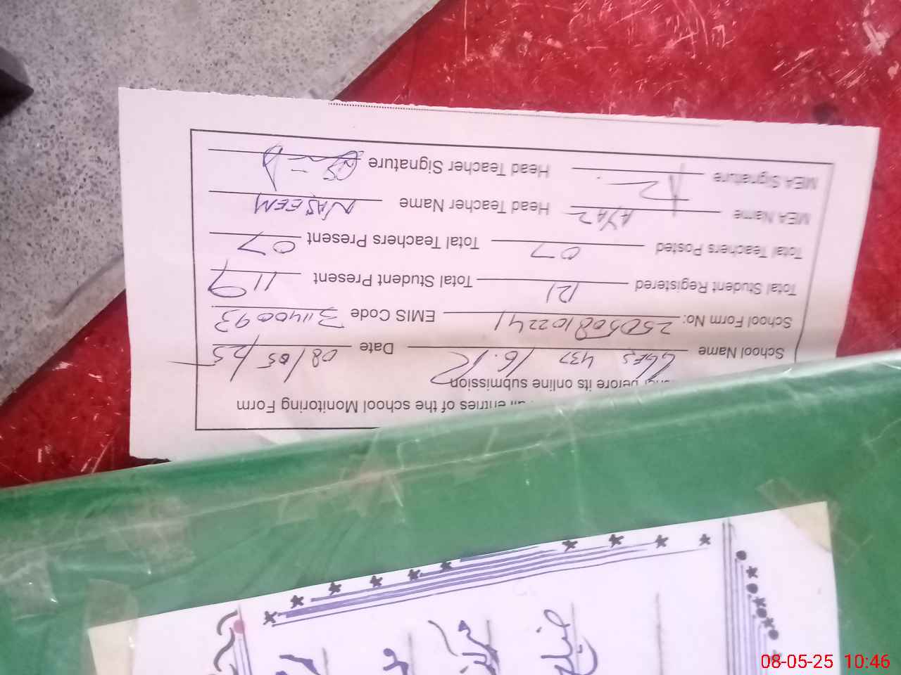| Attendance Register | Head Teacher | MEA with School | Visit Proof |