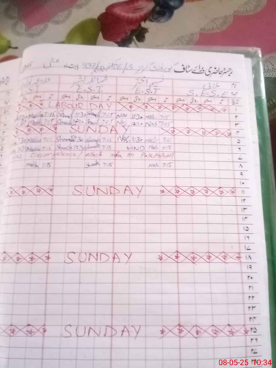 | CNIC | Full Name | Designation | R/C | Absence During Last Calender Month |