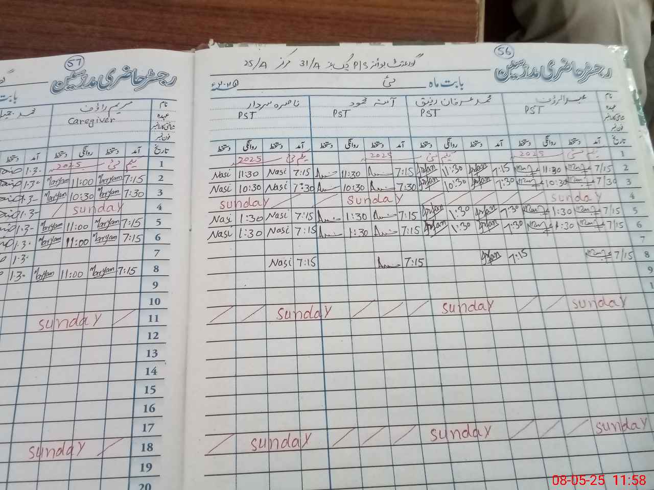 | CNIC | Full Name | Designation | R/C | Absence During Last Calender Month |