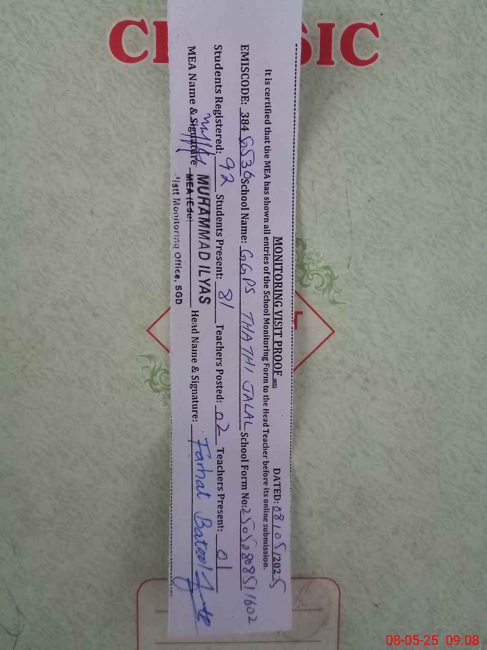 | EMIS Code: 38450536 | Name of School: GGPS THATTI JALAL | |||