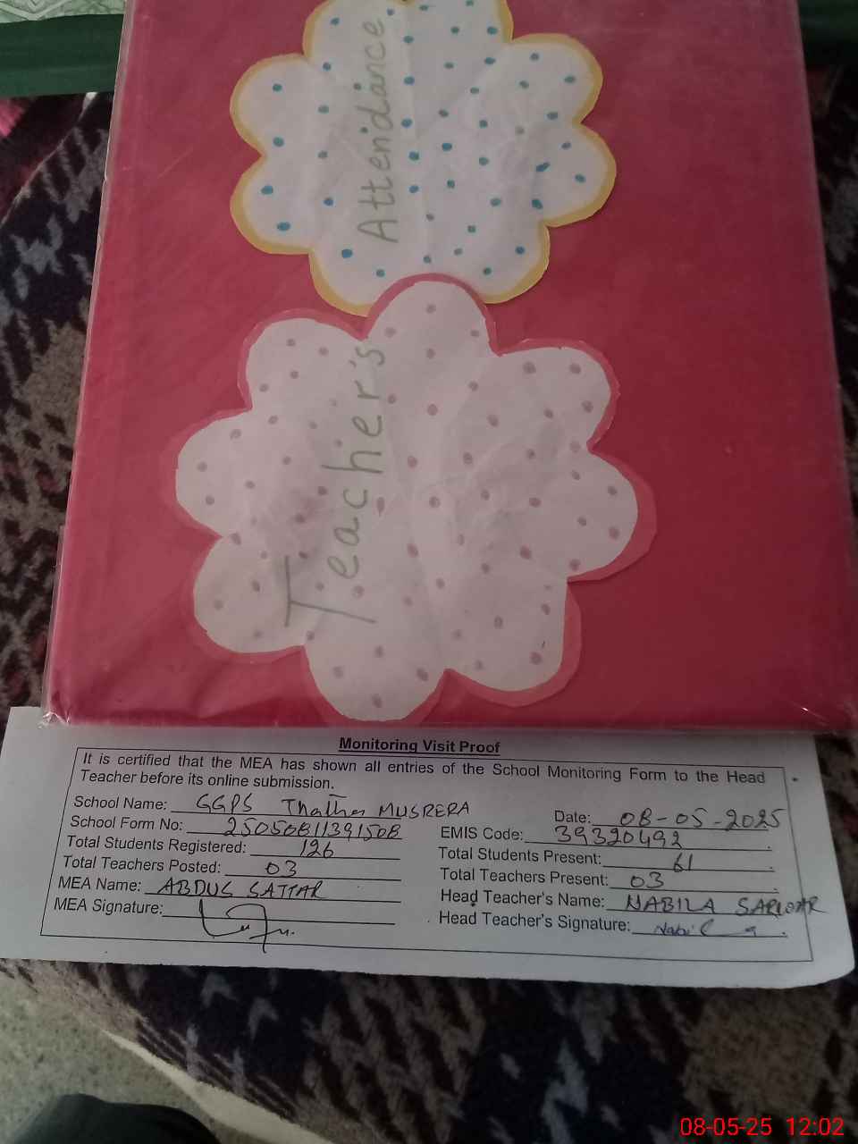 | EMIS Code: 39320492 | Name of School: GGPS THATHA MUSRERA | |||