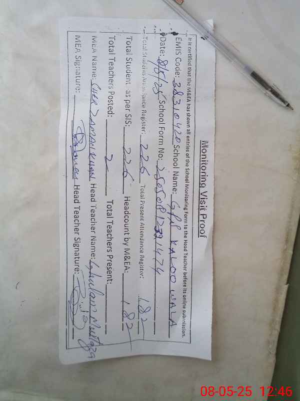 | Attendance Register | Head Teacher | MEA with School | Visit Proof |