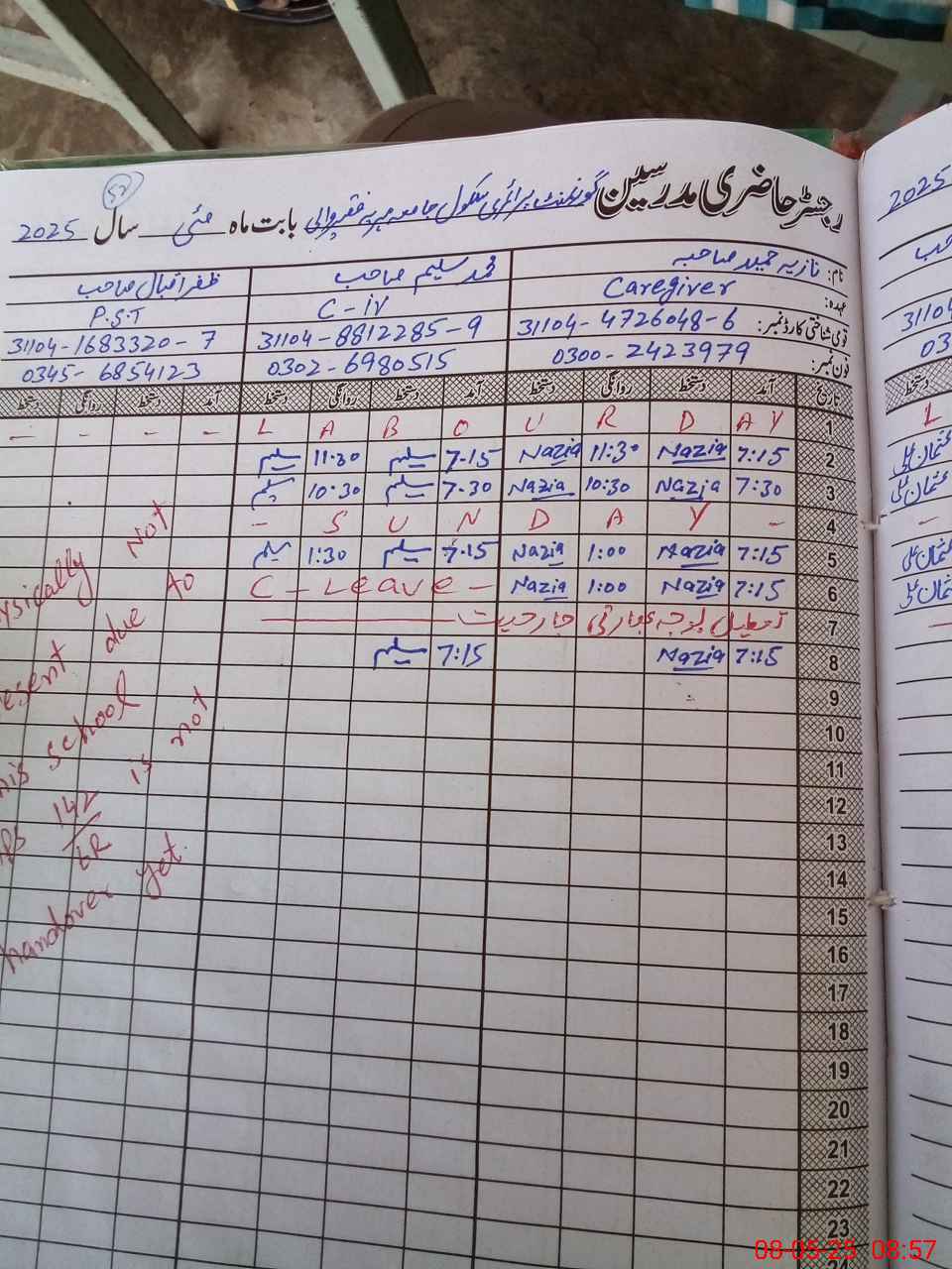 | CNIC | Full Name | Designation | R/C | Absence During Last Calender Month |