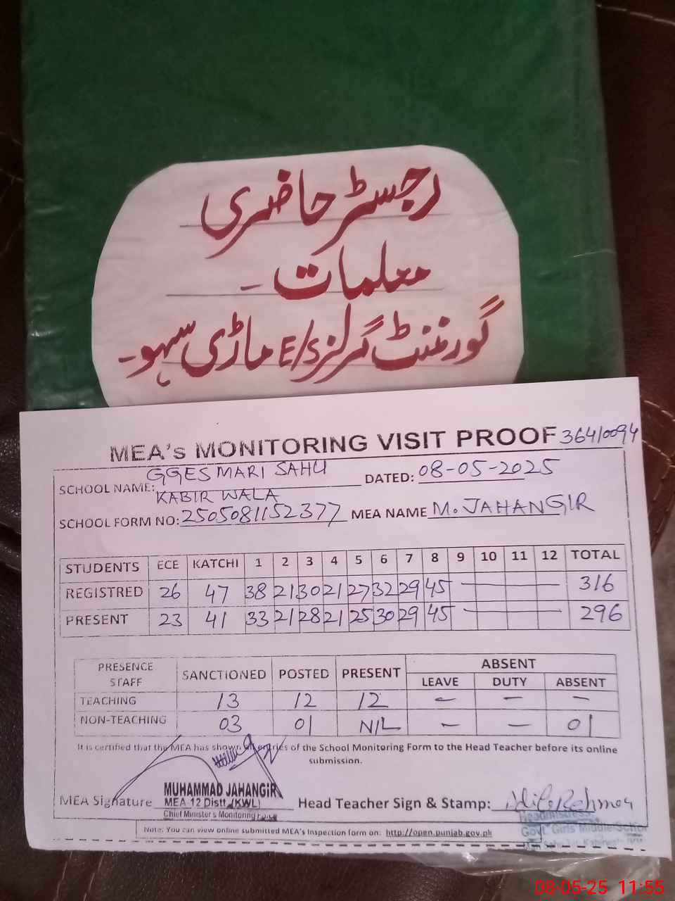 | EMIS Code: 36410094 | Name of School: GGES MARI SAHU, KABIRWALA | |||