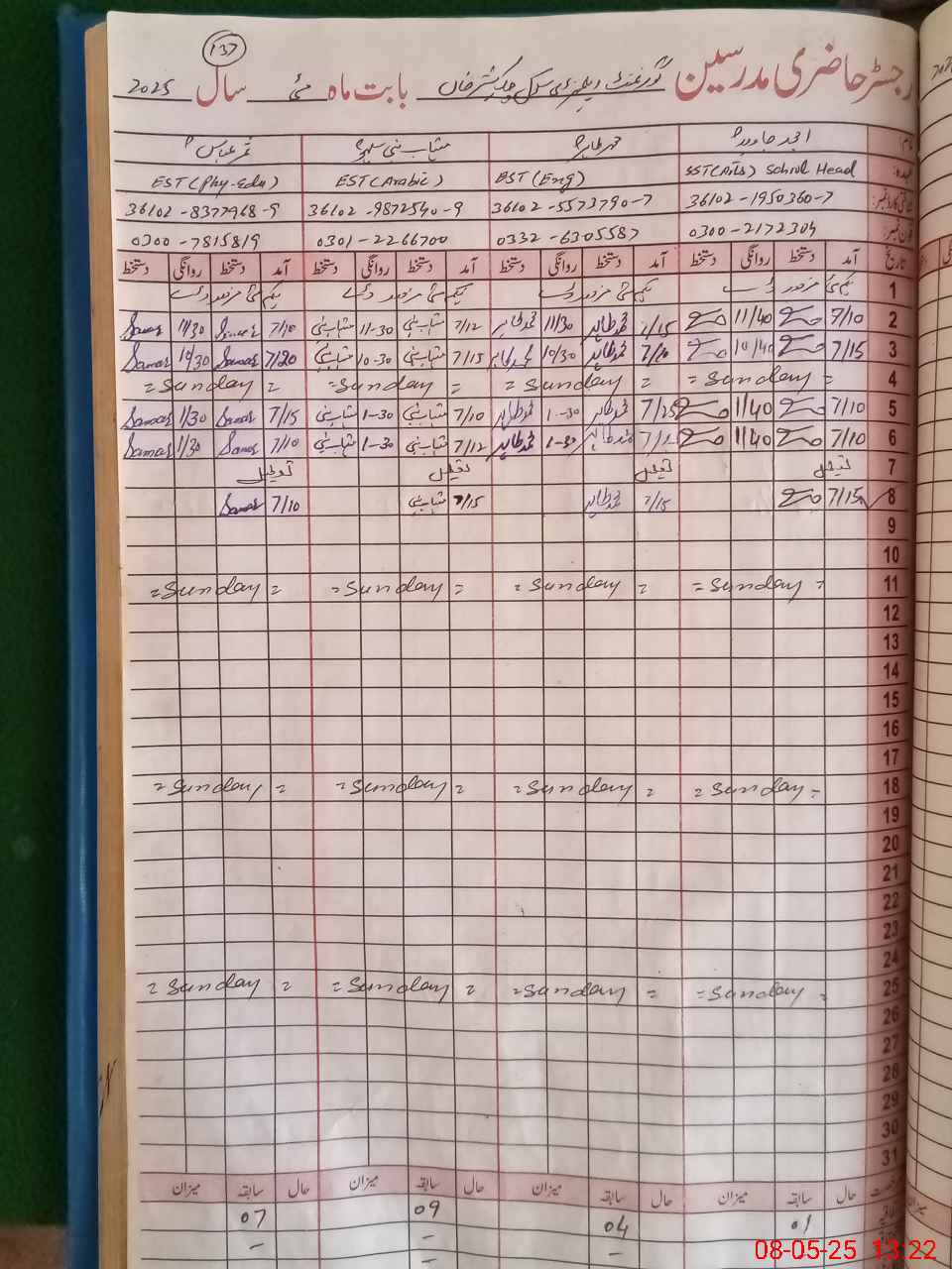 | Name: Am**** Ja**** Designation: (School Headmaster's/Headmistress's) SST (G) Phone/Cell Number: 03**** |