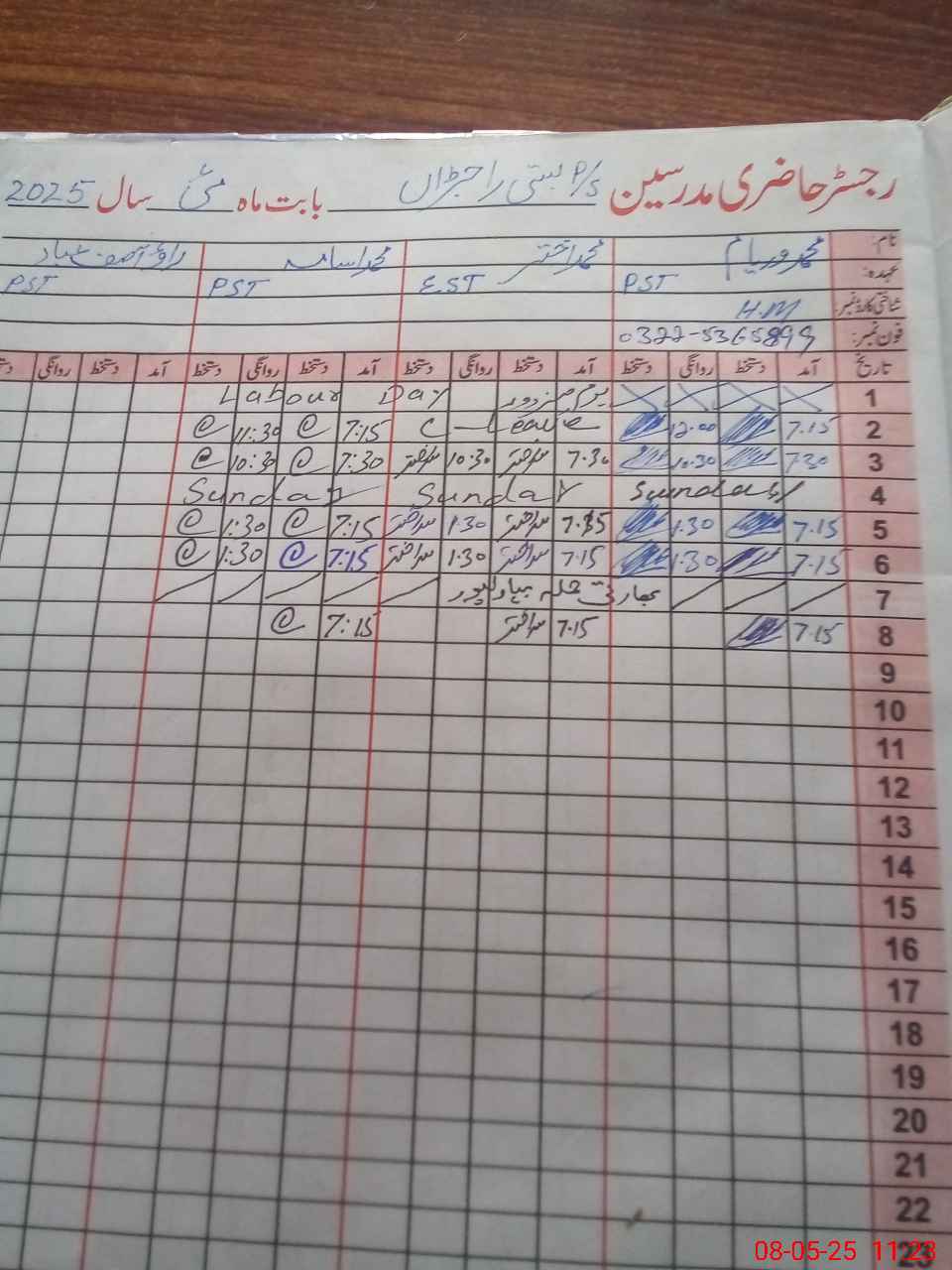 | Name: MU**** WA**** Designation: (School Headmaster's/Headmistress's) PST Phone/Cell Number: 03**** |