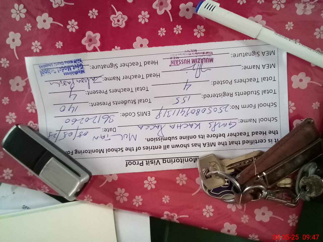| Attendance Register | Head Teacher | MEA with School | Visit Proof |