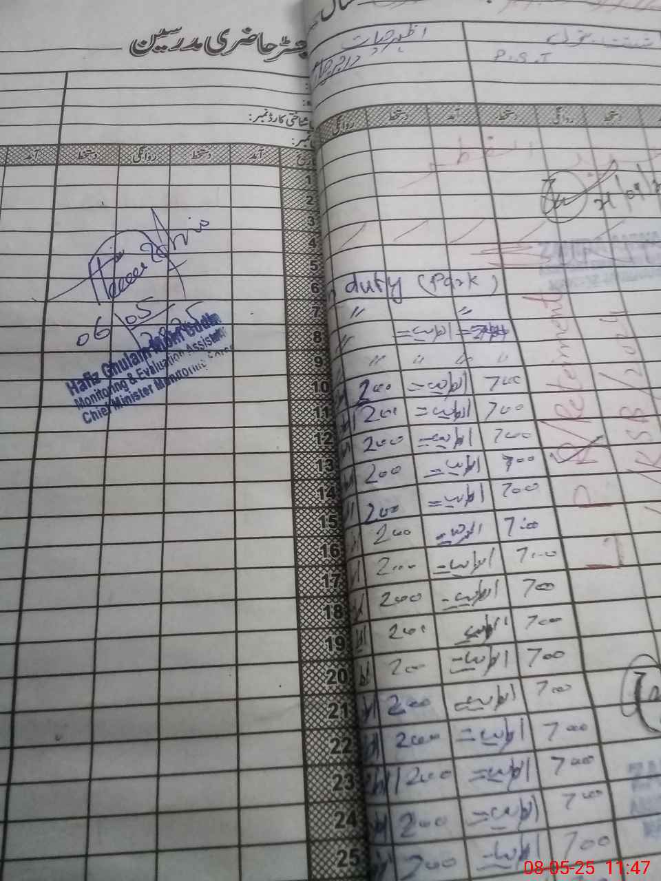 | Name: Uz**** Hu**** Designation: (School Headmaster's/Headmistress's) PTC/PST Phone/Cell Number: 03**** |
