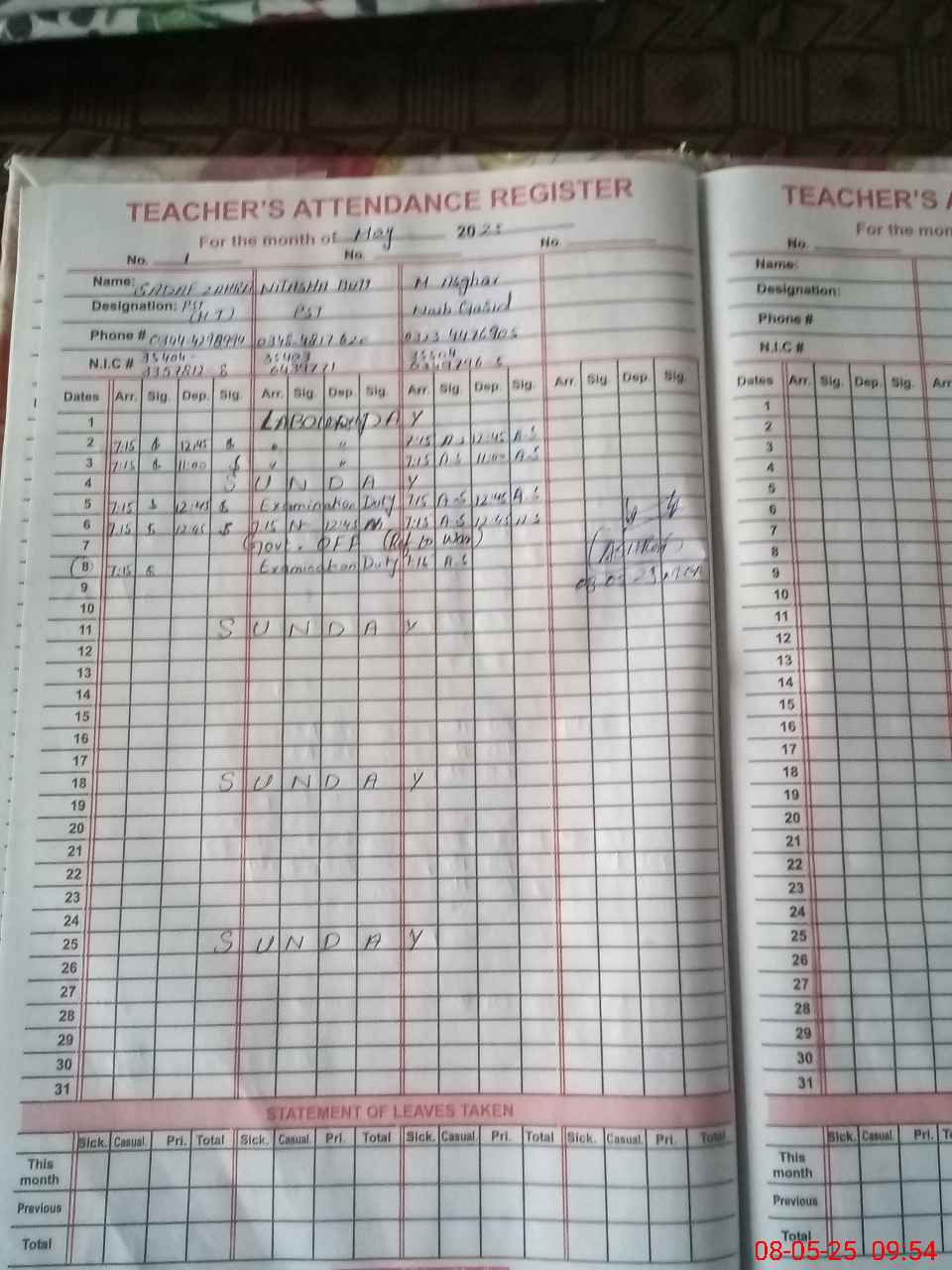 | 35**** | Ni**** Bu**** | 1 | 1 | 0 | 0 | 0 | 0 | 0 | 0 | 0 | 0 | 0 | Exam Duty |