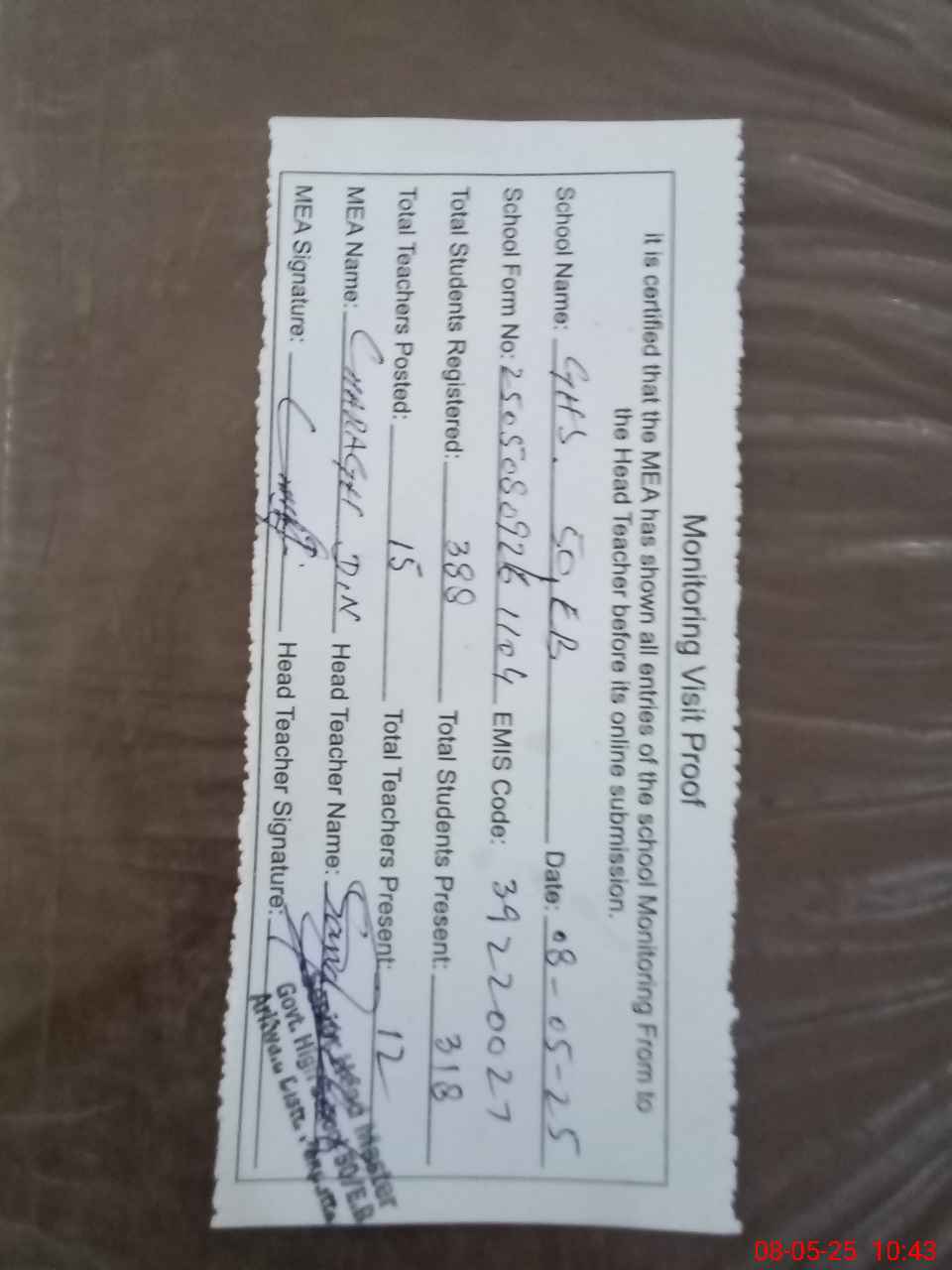 | EMIS Code: 39220027 | Name of School: GHS 50/EB | |||