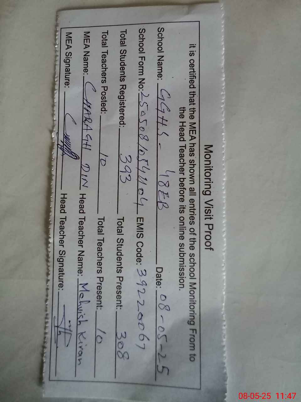 | EMIS Code: 39220067 | Name of School: GGHS 48 EB | |||