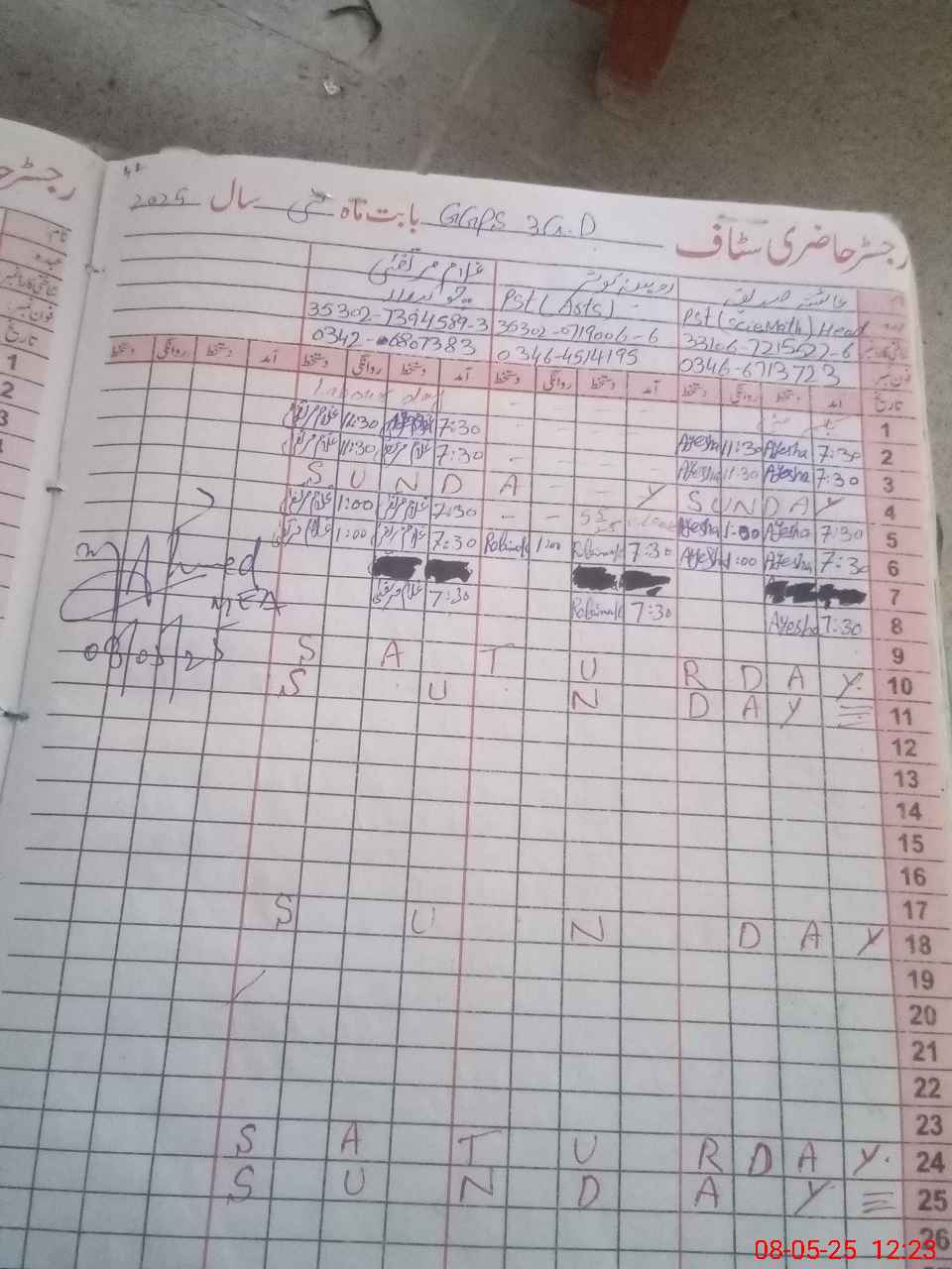 | Name: AY**** SA**** Designation: (School Headmaster's/Headmistress's) PST Phone/Cell Number: 03**** |
