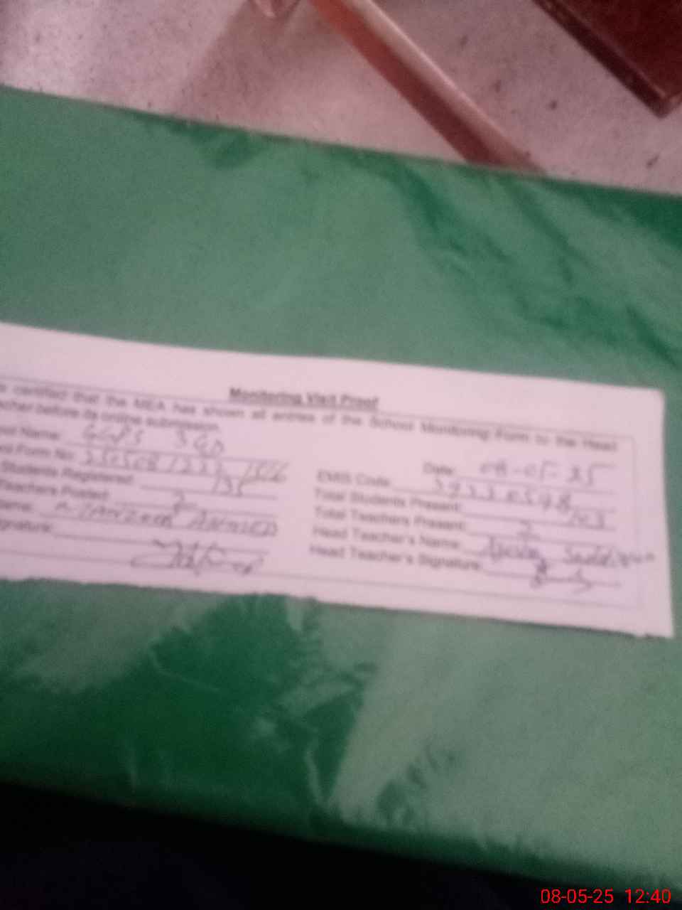 | Attendance Register | Head Teacher | MEA with School | Visit Proof |