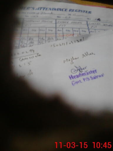 | Name: MA**** AB**** Designation: (School Headmaster's/Headmistress's) PST Phone/Cell Number: 03**** |