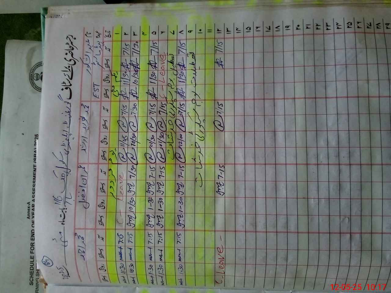 | CNIC | Full Name | Designation | R/C | Absence During Last Calender Month |