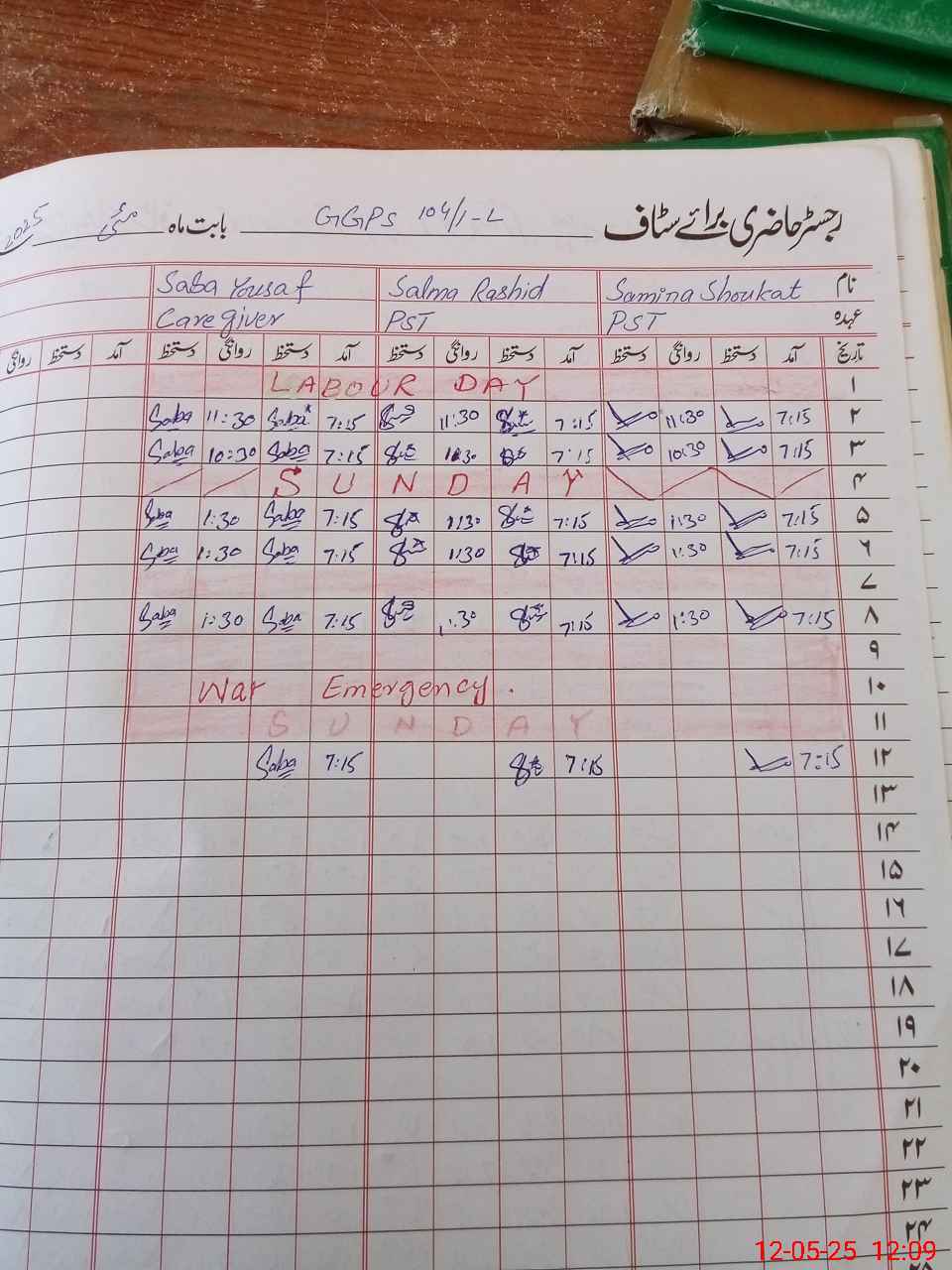 | CNIC | Full Name | Designation | R/C | Absence During Last Calender Month |