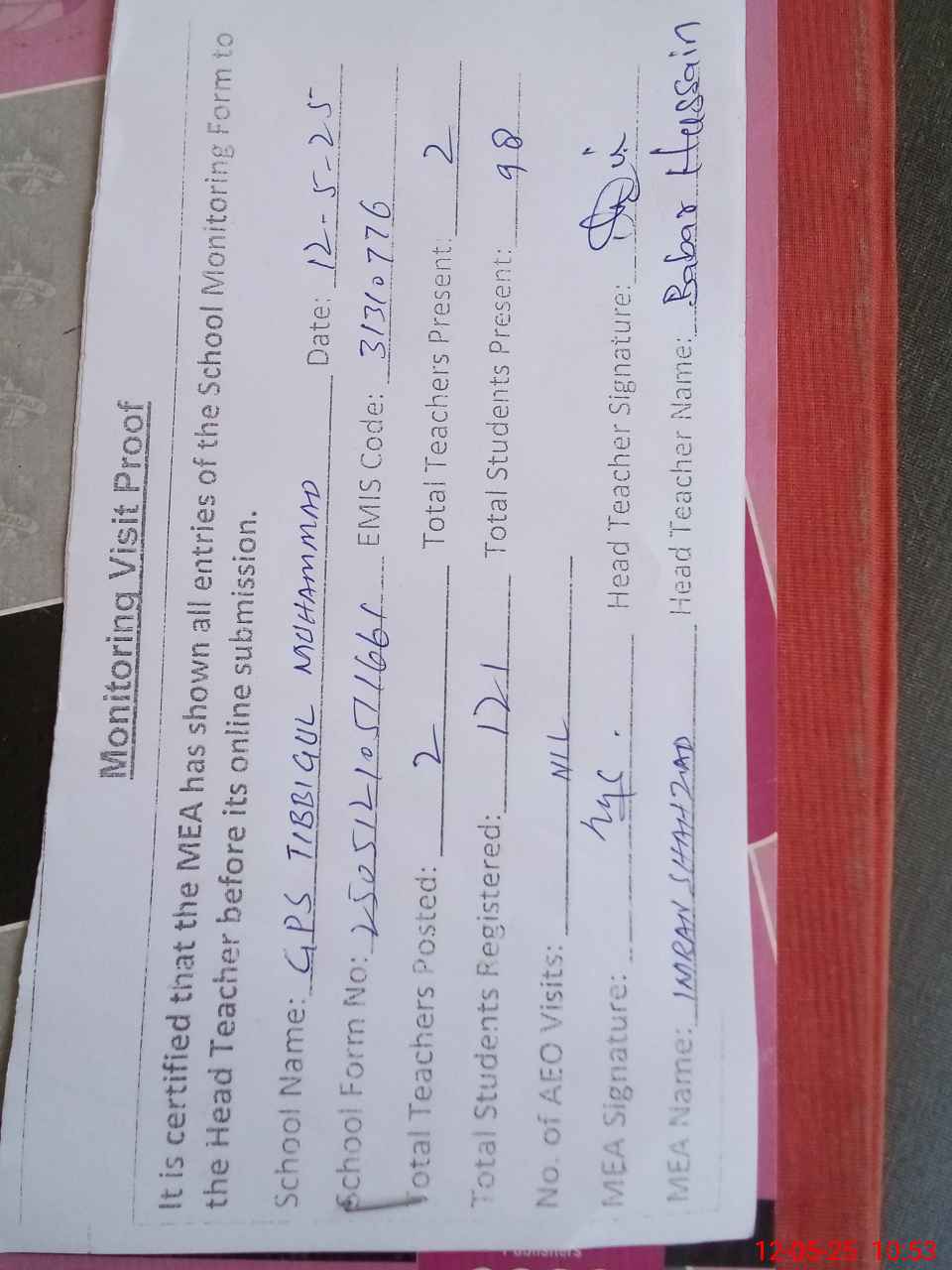 | EMIS Code: 31310776 | Name of School: GPS TIBBI GUL MUHAMMAD | |||