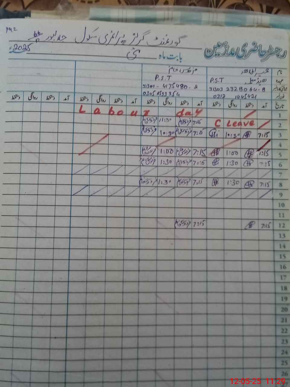 | Name: Hu**** Ta**** Designation: (School Headmaster's/Headmistress's) PST Phone/Cell Number: 03**** |