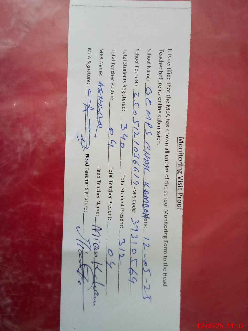 | EMIS Code: 39310564 | Name of School: GCMPS CHAK KAMBOH | |||