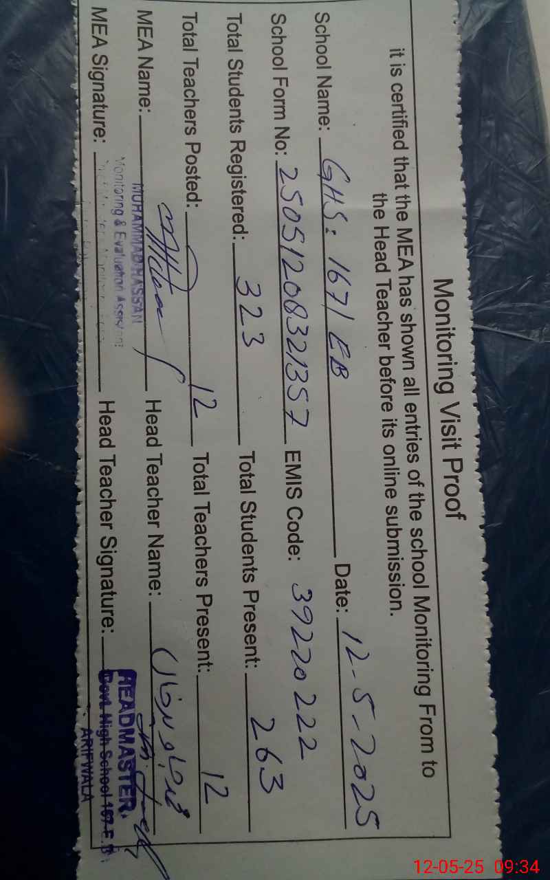| EMIS Code: 39220222 | Name of School: GHS 167 EB | |||