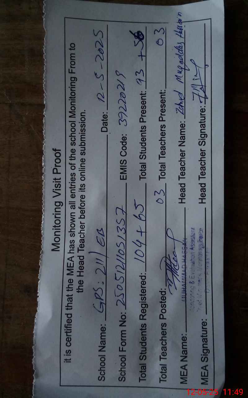 | EMIS Code: 39220219 | Name of School: GPS 211 EB | |||