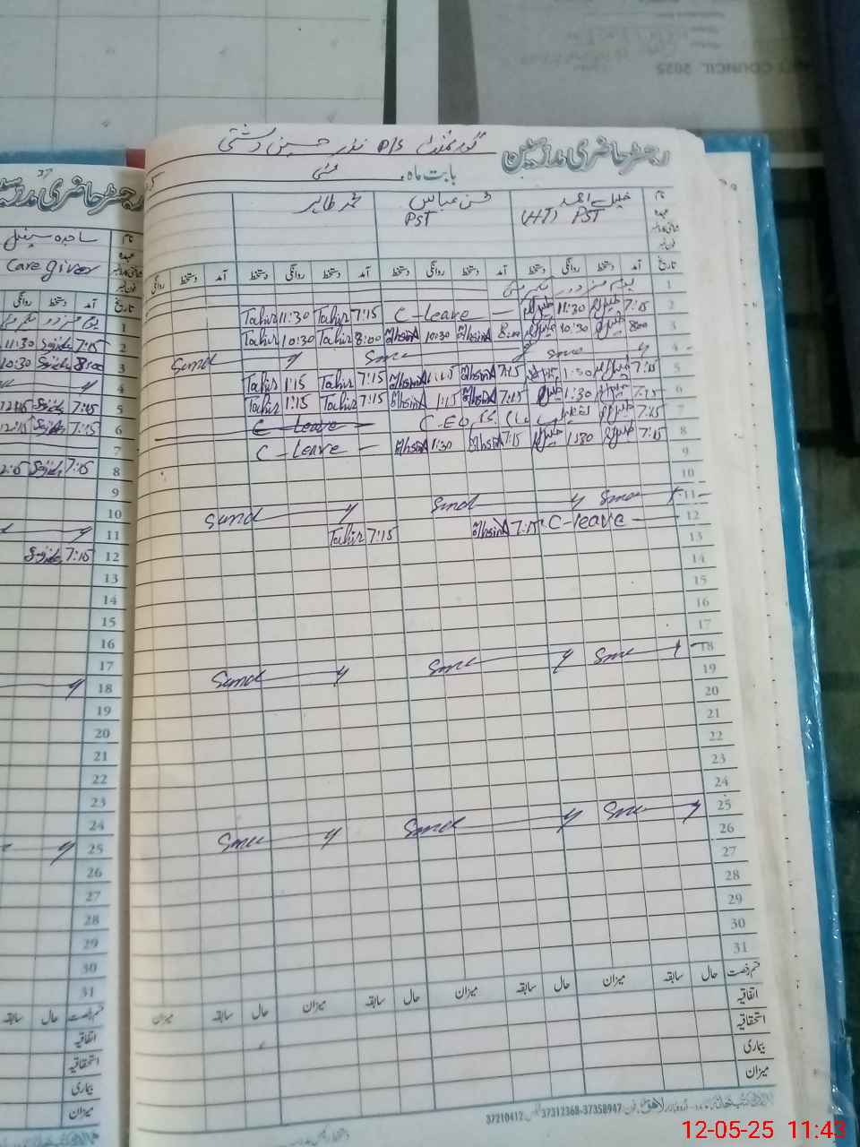 | CNIC | Full Name | Designation | R/C | Absence During Last Calender Month |