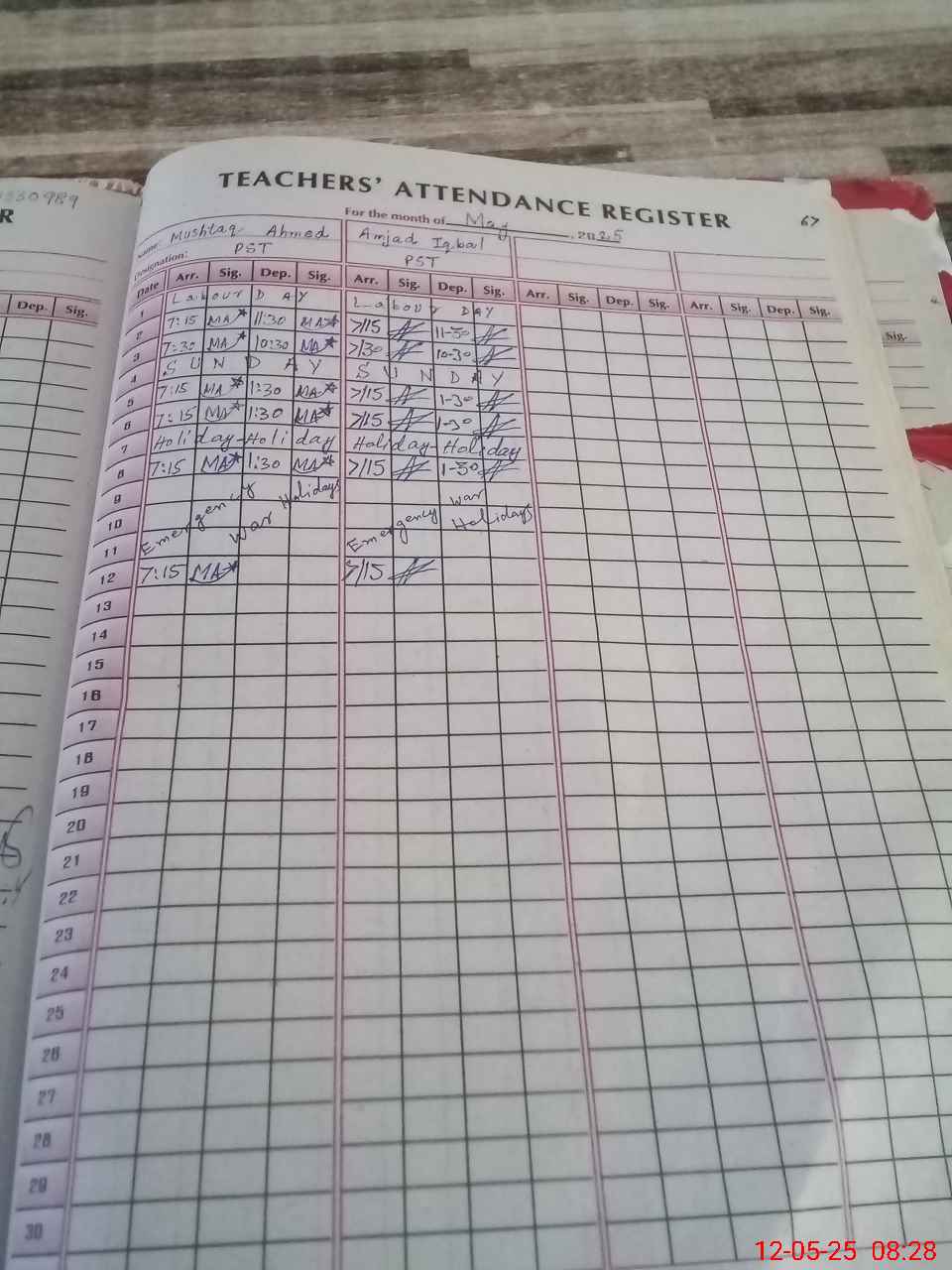 | CNIC | Full Name | Designation | R/C | Absence During Last Calender Month |