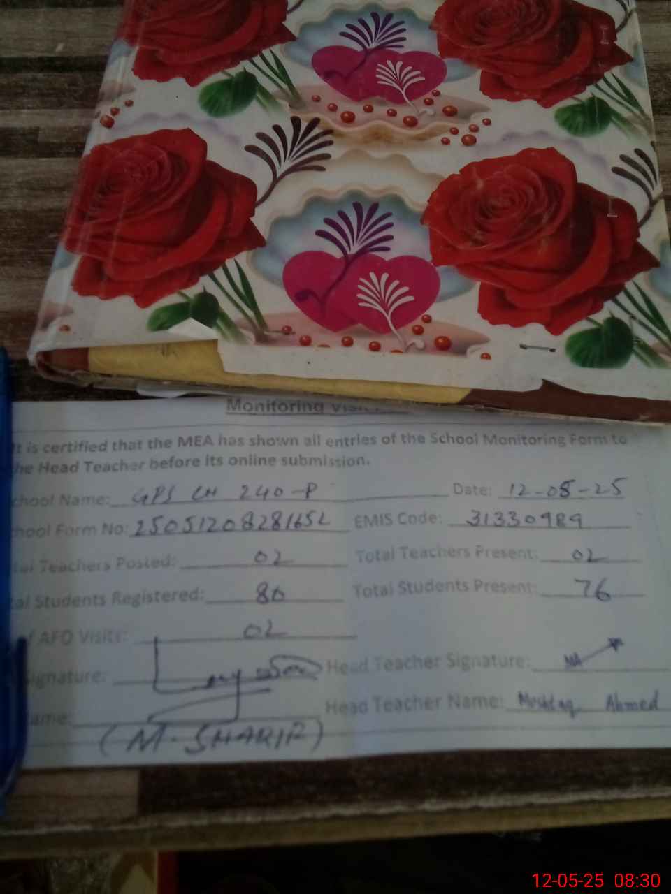 | Attendance Register | Head Teacher | MEA with School | Visit Proof |