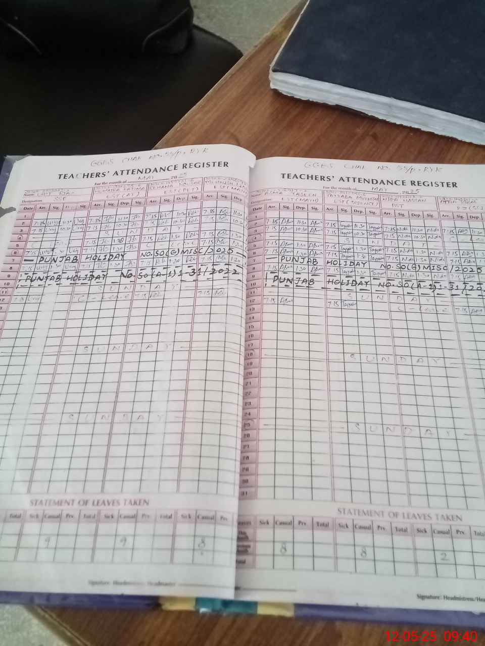 | Remarks (Use Separate Page if Required): Building is totally dangerous and classes are being arranged in GPS 55 P Roznamcha filled with fake attendance 42 students without furniture | |||||
