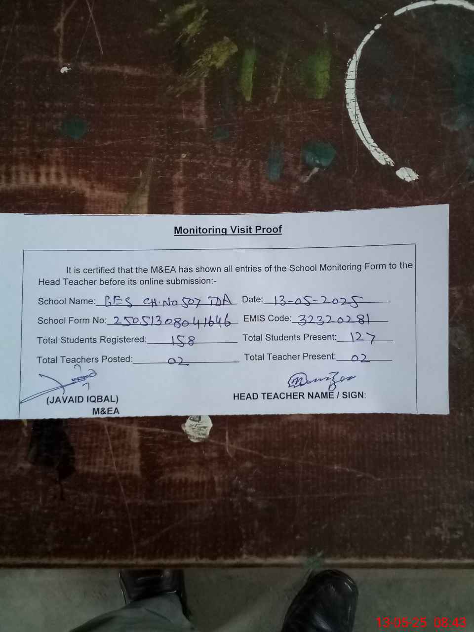 | EMIS Code: 32320281 | Name of School: GES CHAK NO.507 TDA | |||