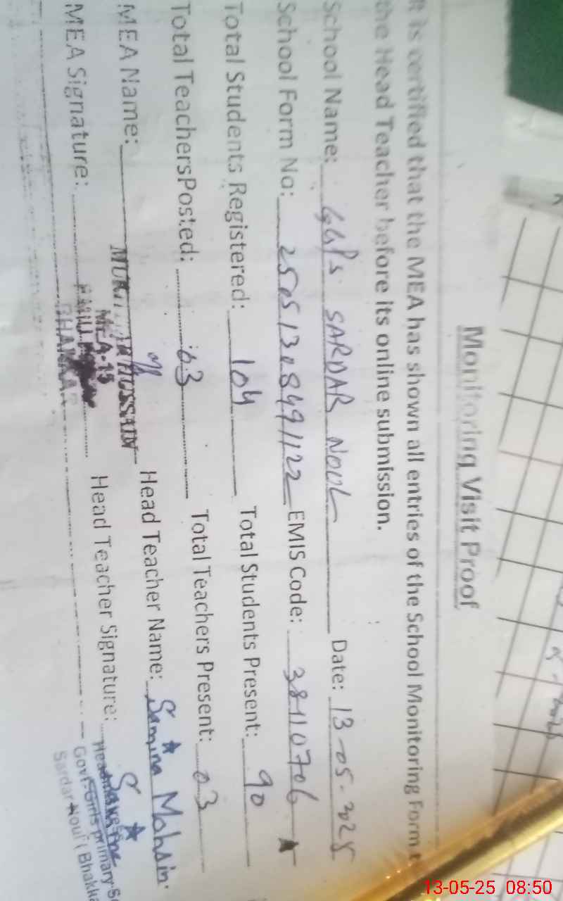 | EMIS Code: 38110706 | Name of School: GGPS SARDAR NOUL | |||