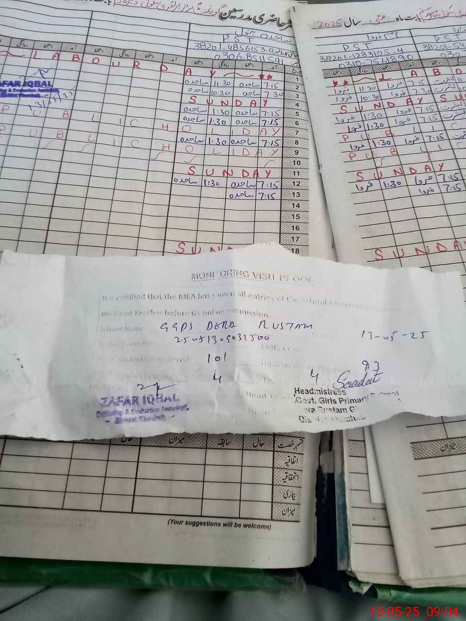 | Attendance Register | Head Teacher | MEA with School | Visit Proof |