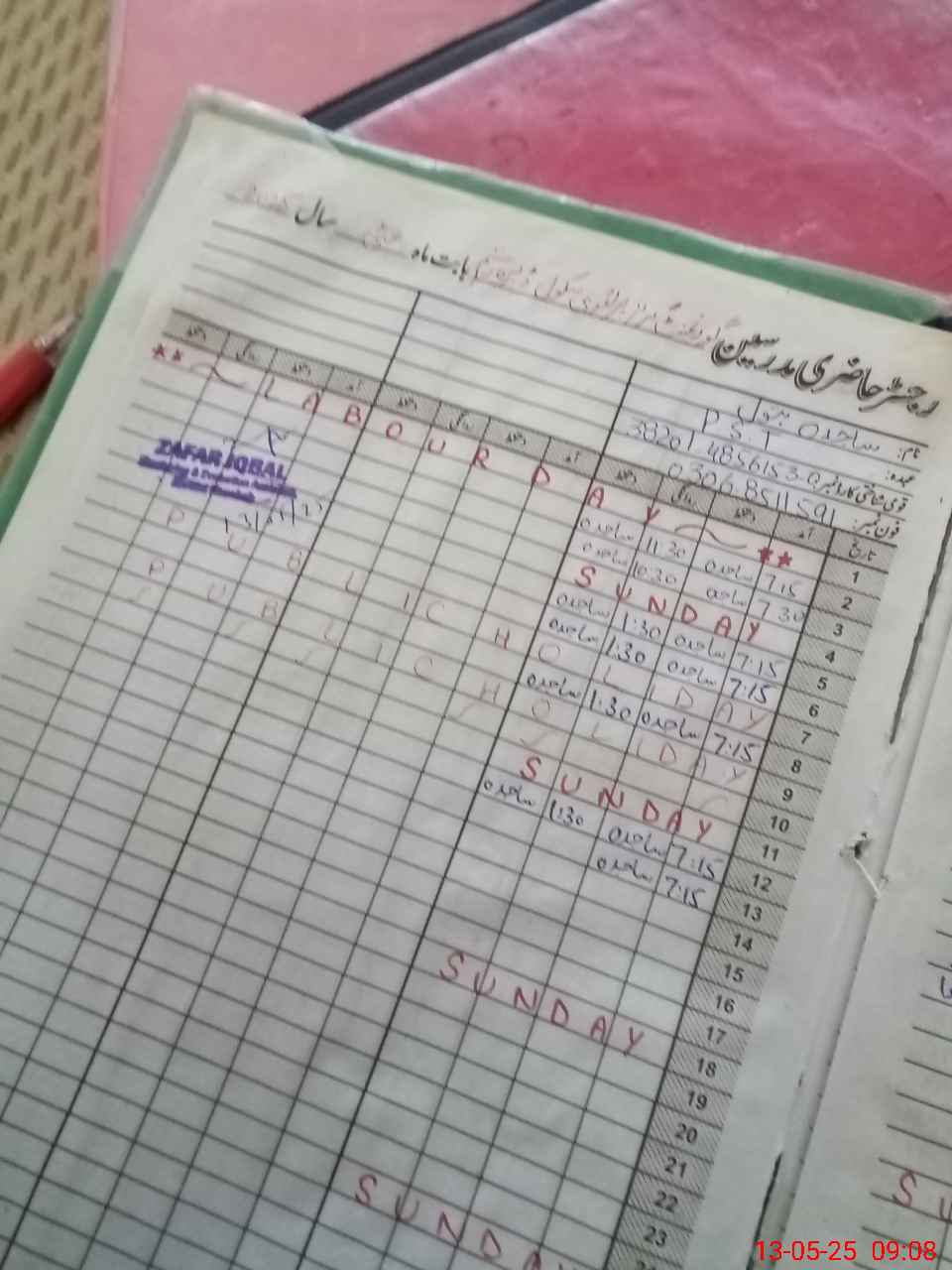 | CNIC | Full Name | Designation | R/C | Absence During Last Calender Month |