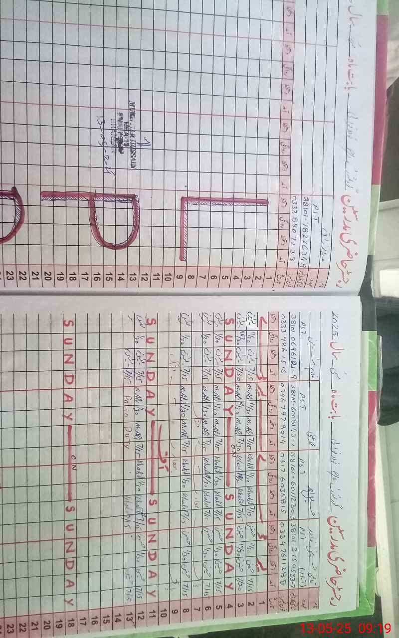 | CNIC | Full Name | Designation | R/C | Absence During Last Calender Month |
