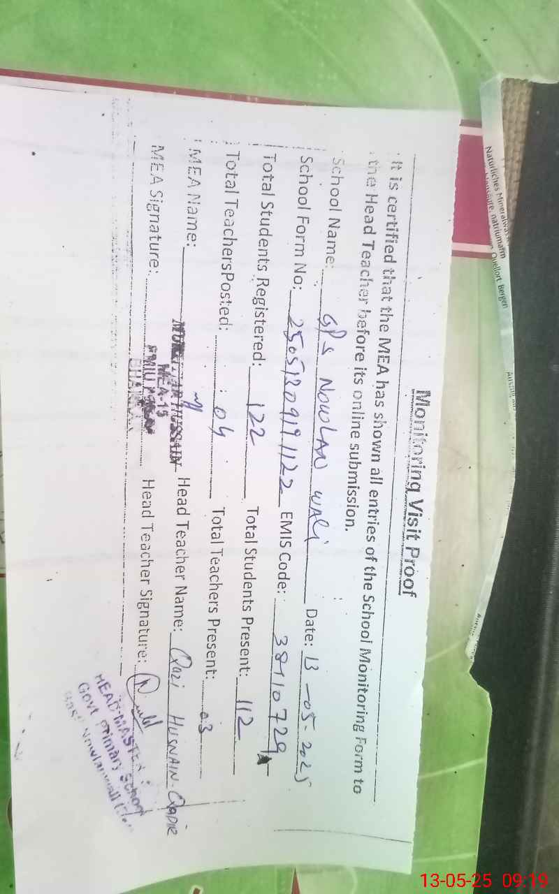 | EMIS Code: 38110729 | Name of School: GPS NOWLAN WALI | |||