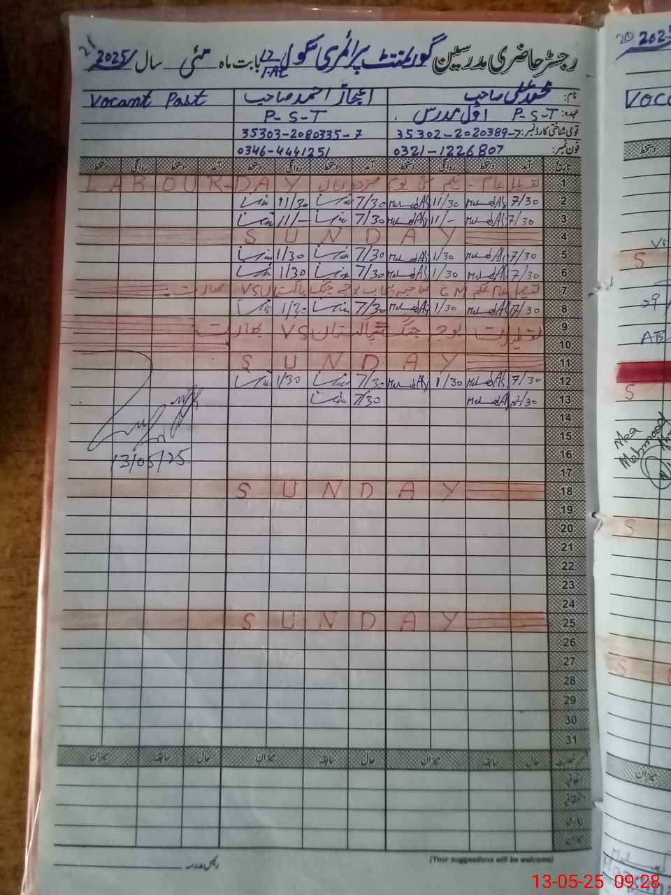 | Name: Mu**** Ta**** Designation: (School Headmaster's/Headmistress's) PST Phone/Cell Number: 03**** |