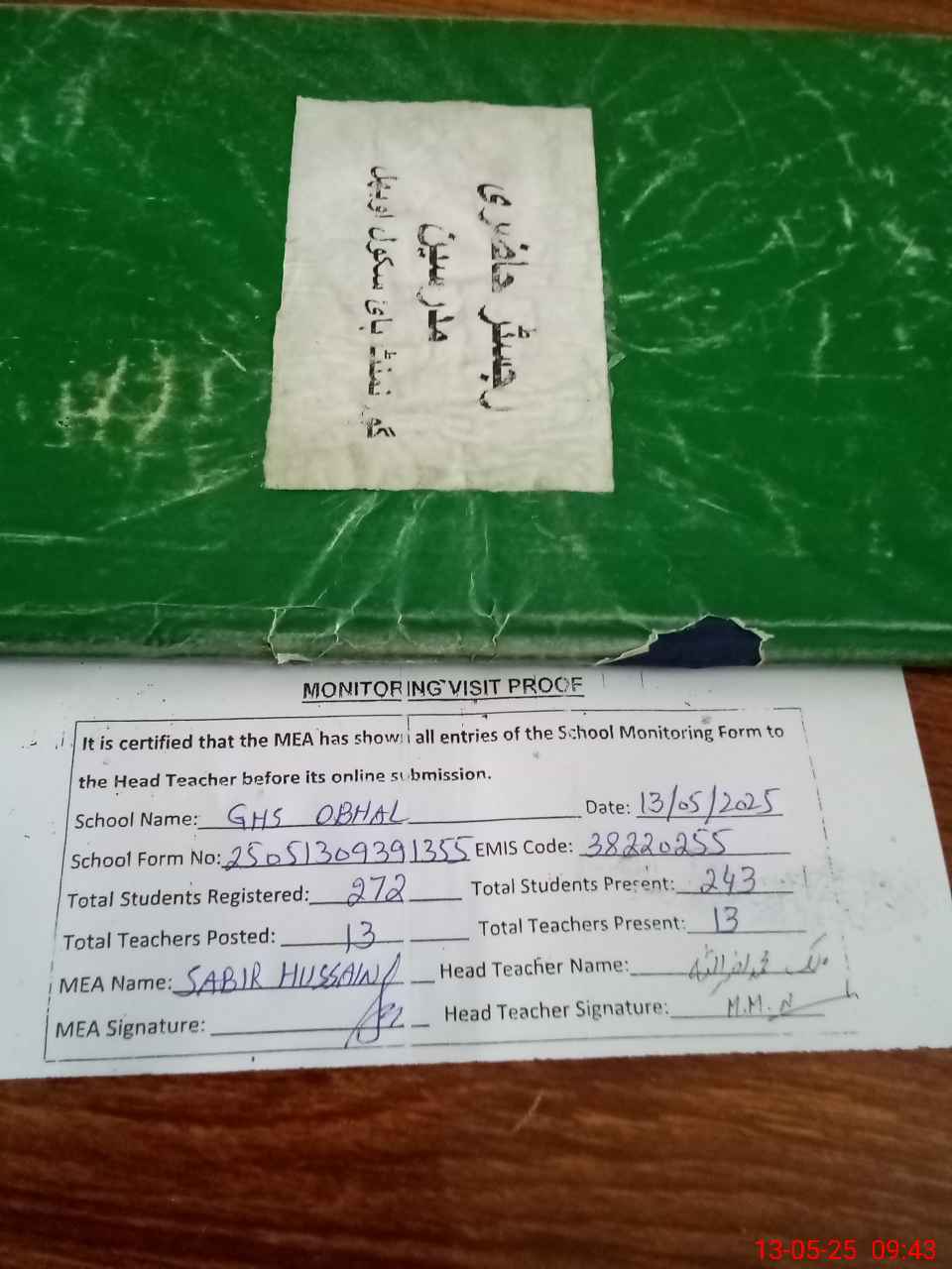 | Attendance Register | Head Teacher | MEA with School | Visit Proof |