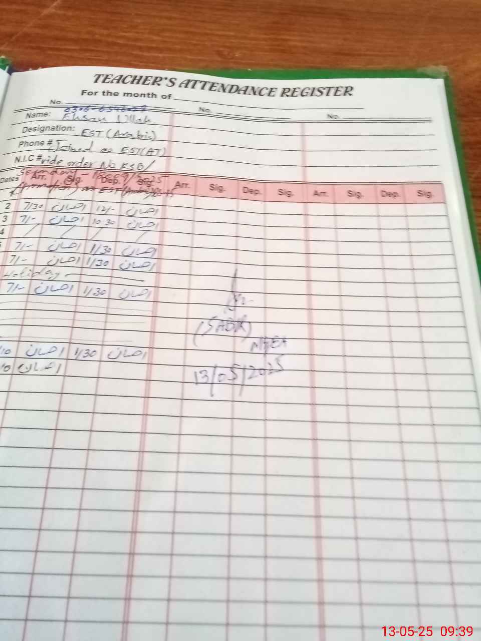 | Name: Na**** Designation: (School Headmaster's/Headmistress's) SST Phone/Cell Number: 03**** |