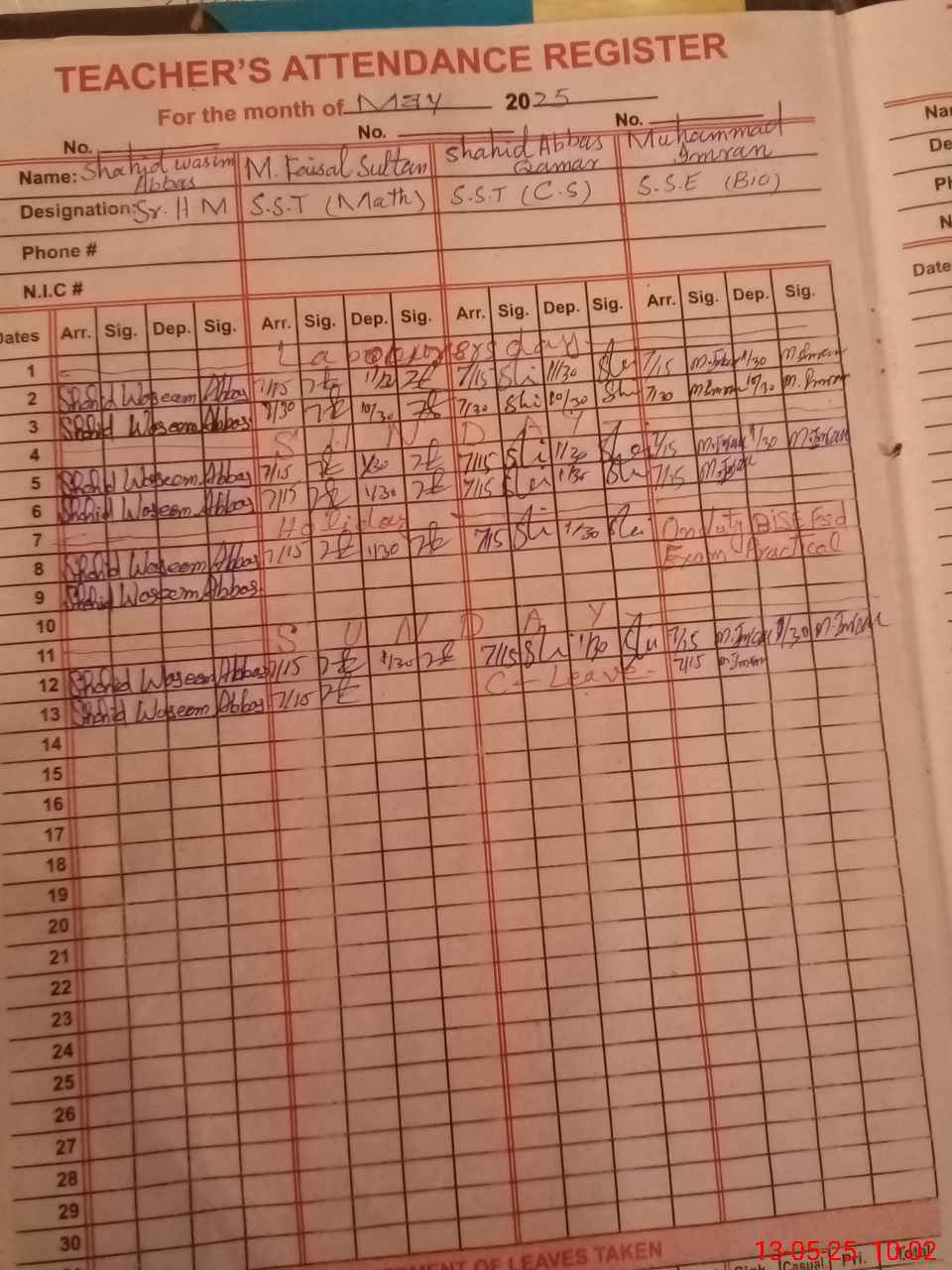 | 33**** | Sh**** Ab**** Qa**** | SST | Regular | 0 | 0 | 0 | 0 | 0 | 0 | 0 | 0 | 0 | Casual |