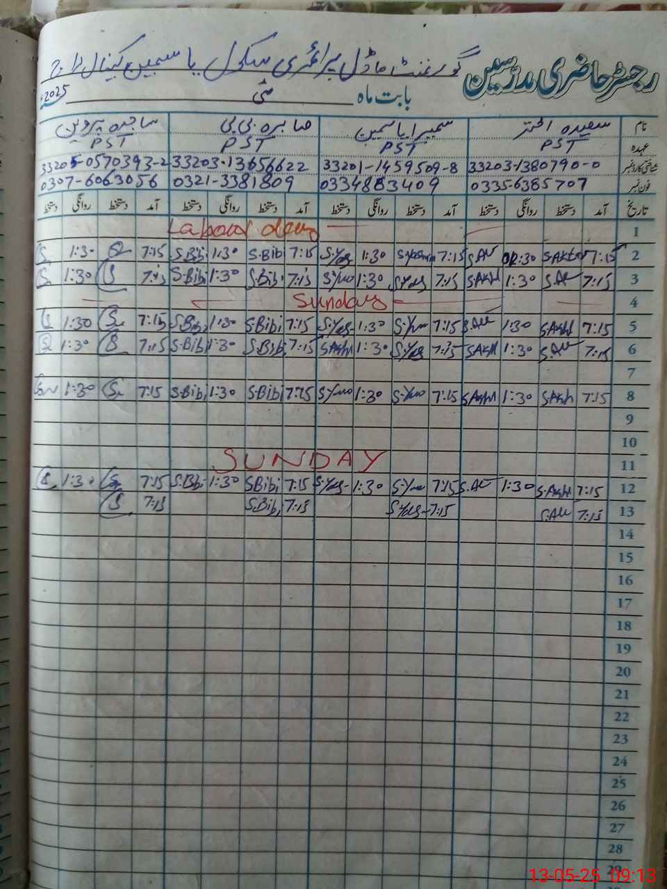 | Name: SA**** AK**** Designation: (School Headmaster's/Headmistress's) PST Phone/Cell Number: 03**** |