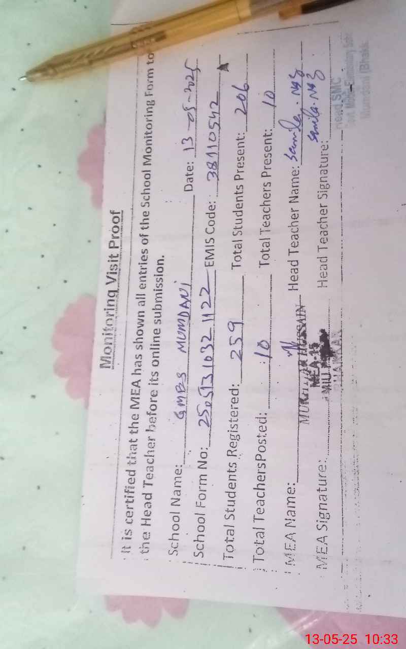 | EMIS Code: 38110542 | Name of School: GMES MUMDANI | |||