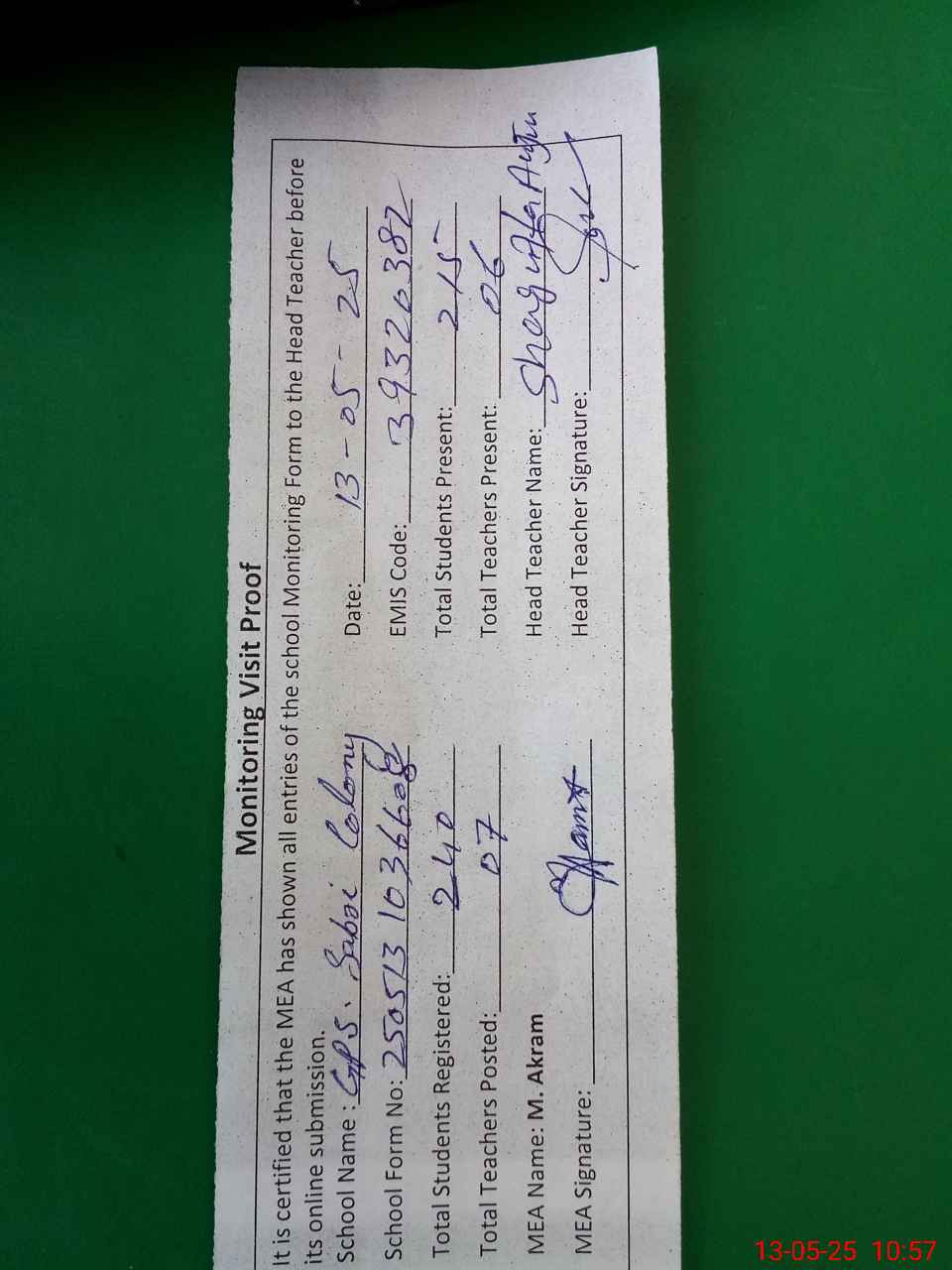 | EMIS Code: 39320382 | Name of School: GPS SABRI COLONY | |||