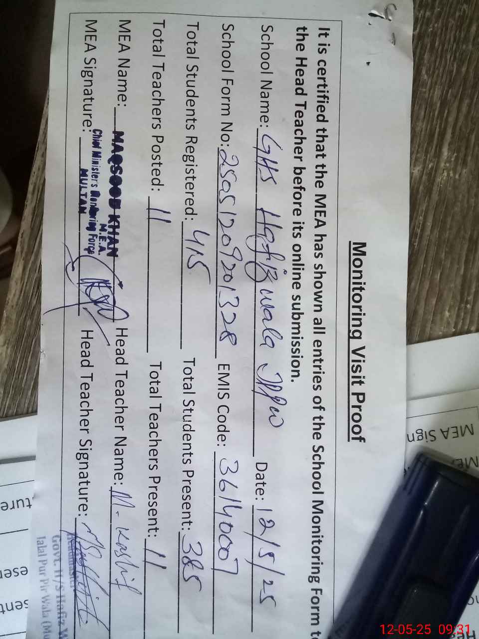 | EMIS Code: 36140007 | Name of School: GHS HAFIZ WALA JALALPUR PIRWALA | |||