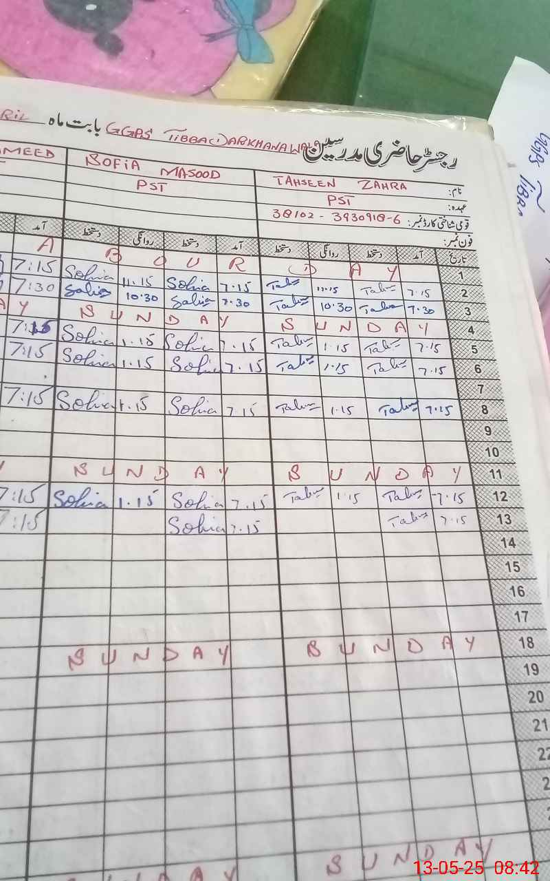 | CNIC | Full Name | Designation | R/C | Absence During Last Calender Month |