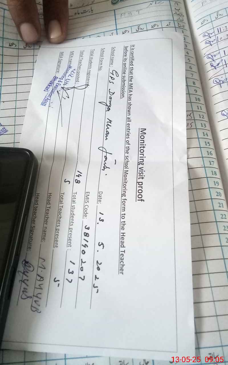 | EMIS Code: 38140207 | Name of School: GPS DARYA KHAN JANOOBI | |||