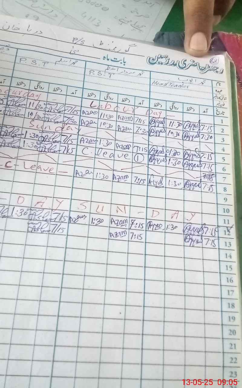 | Name: MU**** SA**** AZ**** Designation: (School Headmaster's/Headmistress's) PST HM Phone/Cell Number: 03**** |